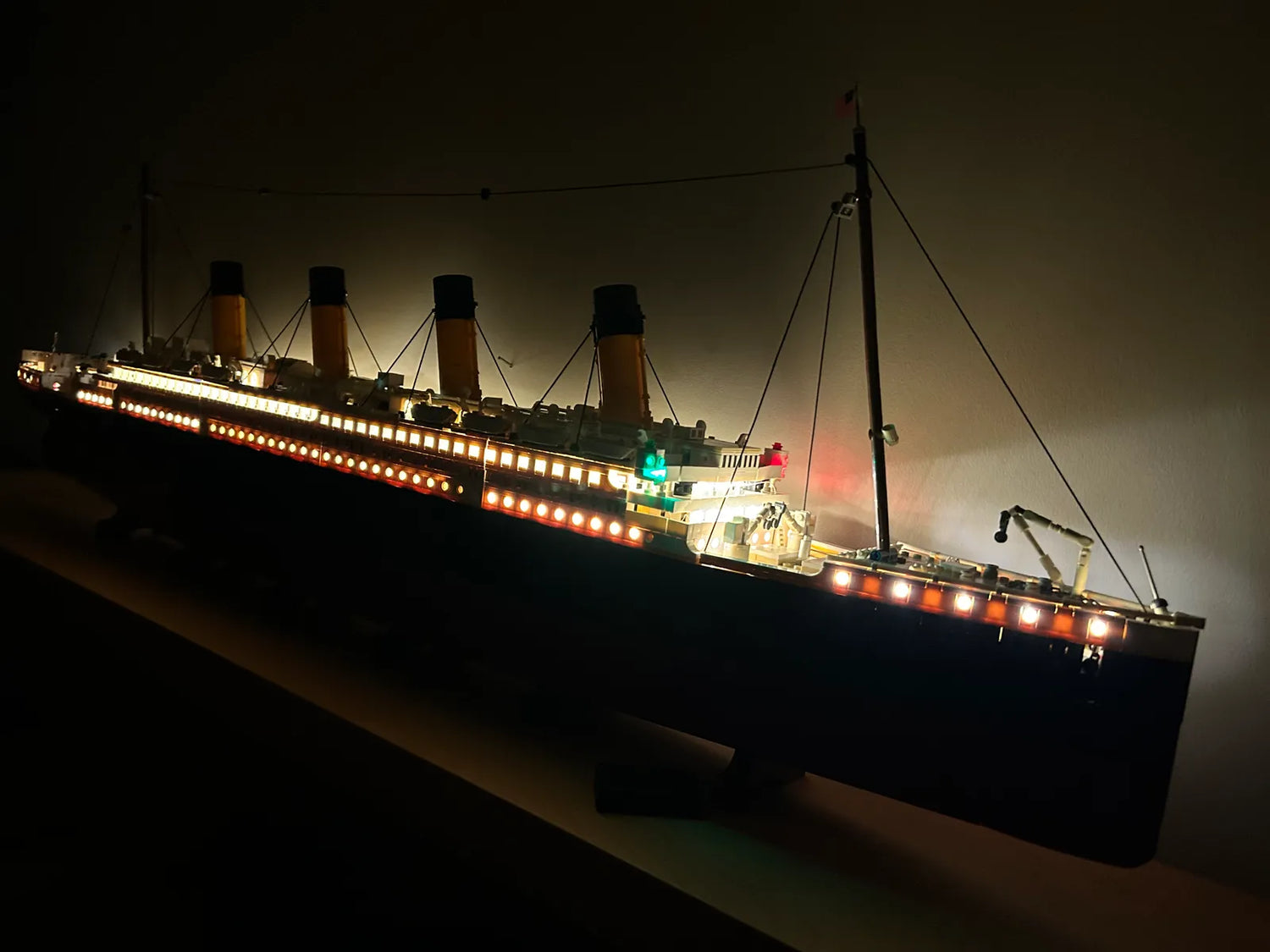 Take a look at the image which showcases the amazing Titanic LEGO® set illumniated with a light kit!